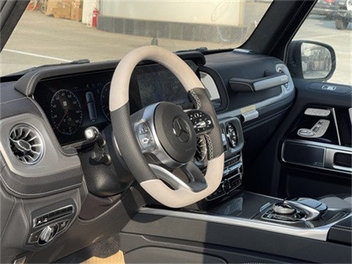 2021款奔驰G550车内采用深色调与桃木装饰,黑色真皮运动座椅非常舒适,方向盘以高档真皮包裹装饰,触感极其细腻。配有桃木装饰的操控台,稳重大气,同时提高了整体的质感。各种功能按钮应有尽有,丝毫不次于豪华轿车的功能。