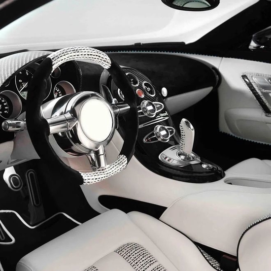 除了吸睛夺目的“碳化”车身,MANSORY对Bugatti Veyron内饰部分也进行了别出心裁的艺术加工:不仅启用大量Mastrotto小牛皮、Alcantara环保麂皮绒等高端皮料、面料打造正副驾座椅、多功能方向盘、地毯、内壁、面板、车顶等区域,随处可见的碳纤维元素与车外遥相呼应,营造出了精彩纷呈的个性空间。