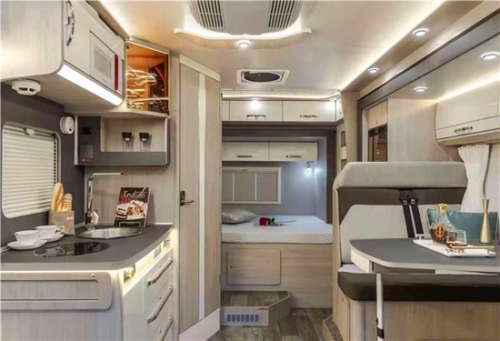 今天给大家推荐的这款房车外观可谓是独具特色,大胆使用了靓丽的颜色作为房车外部车贴,看起来年轻又时尚;房车界首创的世界级顶级跑车设计元素凸显年轻化与运动感,在搭配上红灰色元素,提升整体科技感。