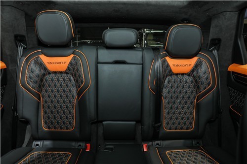 MANSORY迈莎锐的内饰从未让豪车迷们失望过,这款MANSORY迈莎锐卡宴当然也不例外:全车座椅采用Mastrotto小牛皮缝制,12.8万针数控编织工艺密针细缕;Alcantara麂皮绒包覆的地板、内壁、车顶美观环保,与专业赛车不分轩轾;此外,随处可见的碳纤维饰件与车外遥相呼应,跳跃视觉华丽摄心。