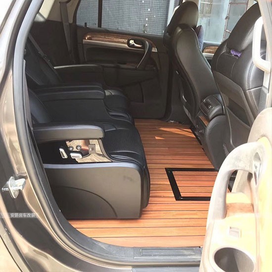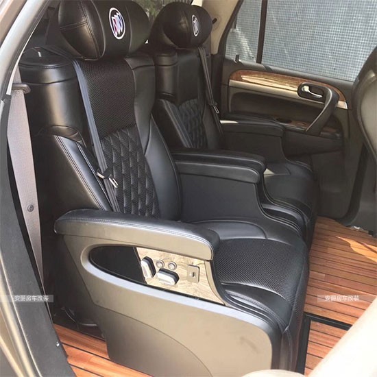 改装项目清单: 航空座椅、三连座沙发、柚木地板、全隔断、带升降电视、半隔断吧台、吧台隐藏座椅、电动中门、电动尾门、导航、桃木方向盘、方向真皮包、覆仪表台真皮包覆、驾驶座真皮包覆、驾驶座电动调节、驾驶座电动加热、驾驶座电动通风、驾驶座电动按摩、驾驶座气动按摩、驾驶座加棉、驾驶舱鹿皮顶、后舱鹿皮顶、后舱星空顶、九宫格顶灯、ABCD柱鹿皮包覆、遮阳板鹿皮包覆、驾驶位门板真皮包覆、中门门板真皮包覆、后尾门门板真皮包覆、全车侧壁真皮包覆、全车私密手动窗帘、迎宾踏板、主副驾驶中央扶手箱、主副驾驶扶手带冰箱、吸顶电视、主副驾驶靠背小桌板、可拆卸桌板车、内氛围灯、吊顶等等。