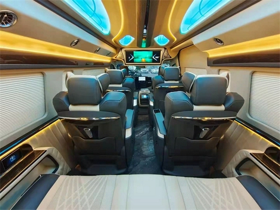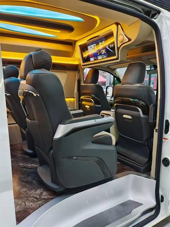 原装进口的埃尔法 (配置|询价)豪华座椅,并且再配备电动加热通风以及电动脚托的装置,丰田海狮改装商车在内饰座椅上的选择上充分体现了对于乘车人员舒适度的考虑。车内采用最舒适的音响设备和,丰田海狮改装商务车为我们在旅行中提供了优质音乐和旋律的需要,再加上车内增加了隔音设备,对回声的处理,丰田海狮改装商务车,更是为我们提供了最舒适的环境,宽敞的空间优雅的内饰,动听的音乐,这一切都是丰田海狮改装商务车的独特之处。