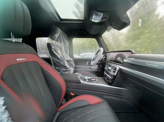 奔驰G级AMG车身长度4864mm、车身宽度1984mm、车身高度1974mm、轴距为2890mm。内饰部分中控台上方为皮质带缝线包裹,往下是家族化的双联屏设计,分别为一块12.3英寸的全液晶仪表以及一块12.3英寸的中控大屏,车机这一块的实用性不及国产车型。方向盘材质采用Alcantara材质,整体握感特别好。这台车专门为副驾驶做了扶手,我认为这个配置几乎是个摆设,再往下是金属拉丝饰条贯穿,整个内饰看起来很有豪华感且不乏科技感。