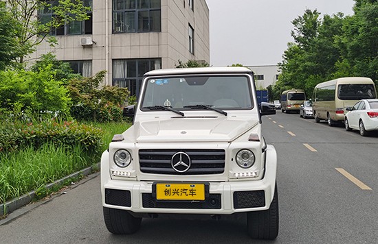 G63 (配置|询价)经典的方盒子造型,钻石白的车身涂装让它看上去更像一件艺术品,拥有高贵气质之余又有年轻气息,前脸部分横幅的镀铬格栅与两侧的圆形大灯完美配合,有刚有柔,让车头无比抢眼,另外前保险杠的设计极具侵略感,视觉效果非常凶悍,G63搭配22寸的AMG高光轮毂充满运动感,而且外凸式的轮眉设计肌肉感十足还很有复古韵味,总体来说它是一台光外形就让男人爱不释手的好车。