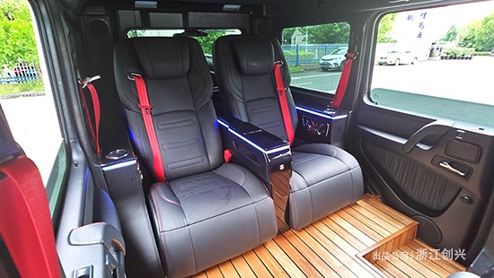 这台17款的G63从原先的五座变成了四座版,四座版的它空间上改变了许多,除了座椅更大外、空间也更大,功能也更多,四座G63它是一台无比运动的车,也是一台舒适度十足的车,后排座椅的两个靠背可以完全往后方平,由于座椅非常宽阔又高又平整,所以打平后就可以当一张床使用。