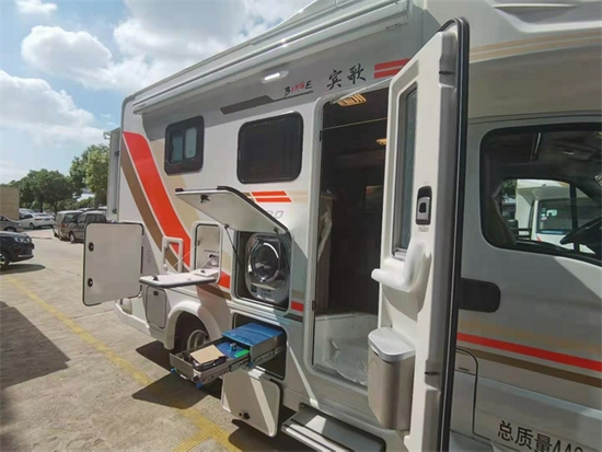 车身外部还配有遮阳棚、电动踏步、外置抽拉燃气灶、外置市电接口、注水口、外置淋浴花洒、外置翻板、贯通行李舱、全自动洗衣机等。电话:18017691185微信同号。动力方面,搭载3.0T柴油涡轮增压发动机,传动系统匹配8速自动变速箱,最大功率125kW,最大扭矩400N·m,上蓝牌C本驾驶,符合国六排放。