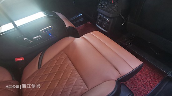 另外座椅除了靠背可以调节外还有电动前后移动和电动腿托功能,加起来一共六项调节,颜色方面和原车的没有色差,周末放假或者节假日一家人去野外郊游看看祖国好风光的时候或者长途行车旅游躺在后面的沙发上开启按摩、打开腿托闭眼休息来上一段每秒的音乐是多么惬意的事情。
