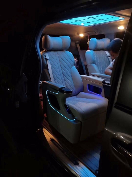 丰田塞纳改装中排航空座椅,后排沙发床,地板,扶手箱及顶灯算是简单实用的改装方案了,不过中排座椅却有很多档次可以选择,价格也都不一样,看个人喜好。