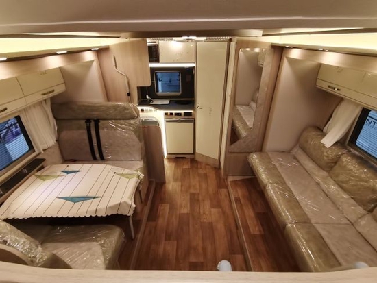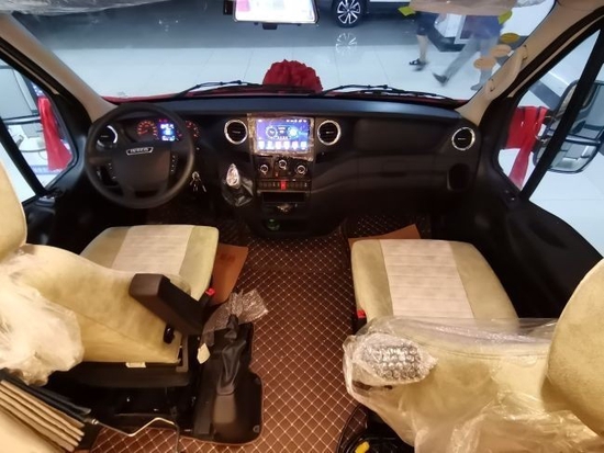 这款房车是基于依维柯欧胜 (配置|询价)底盘打造的,全车的尺寸为5990*2545*3190(mm),轴距长度为3300mm,不足六米的车身长度满足蓝牌C本驾驶,另外整车加宽了后桥轮距,一步提升行车路上的稳性。