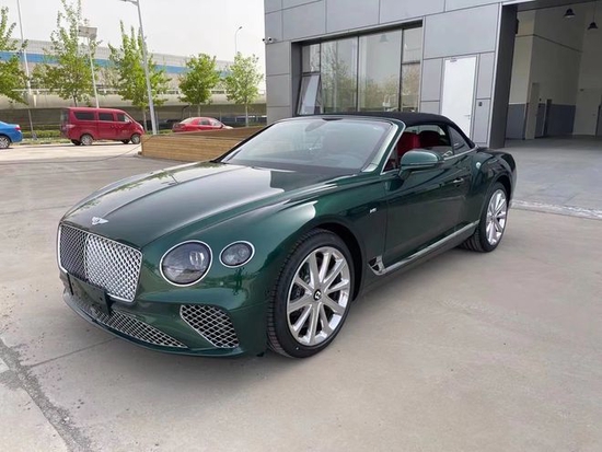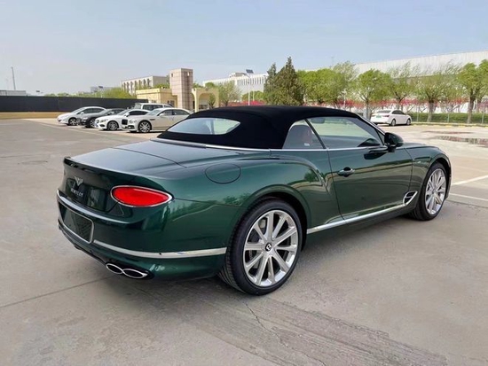 车身侧面腰线十分优雅,选用软质折叠敞篷,彰显典雅造型,车尾换装全新的LED尾灯,灯组内部采用宾利最新的“B”字形设计,排气为双边共两出式布局。