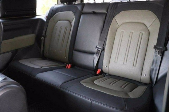 进入车内,它是路虎旗下继星脉 (配置|询价)之后,又一款表现更为出色的车型,在用料、做工、科技感和奢华感方面都营造的极为出色。铝镁合金双横梁布局加入了质感绵软的真皮材质包裹,扶手箱、门把手还加入了实木装饰面板点缀,奢华感极为出色。10英寸中控液晶显示屏、HUD抬头显示,而娱乐系统也升级为最新的PIVI Pro,科技感可以与路虎揽胜 (配置|询价)星脉一较高下。尺寸硕大的四辐方向盘造型硬派,气囊盖上有真皮包覆,全地形反馈系统也集成在空调面板里,再加上精致的电子档杆,留出来更多的储物空间。真皮座椅搭配着14扬声器Meridian音响系统,带来了殿堂级的尊享感受。此外,它还配备有无钥匙进入、一键启动、真皮座椅、座椅加热/通风、自适应LED大灯、18向电动调节真皮座椅、USB接口、12V电源接口、手机无线充电、220V电源接口、双区自动空调、3把差速锁、车载冰箱