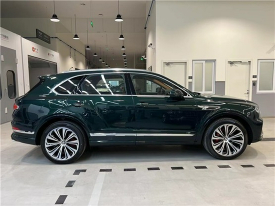 21款宾利添越车身侧面富有肌肉感的外观设计风格鲜明。前翼子板的侧面配备经过加长设计的全新进气口,并位于富有雕塑感的动力线之上,而车门下部饰条也采用全新设计,点缀以别具一格的“V8”专属徽标。