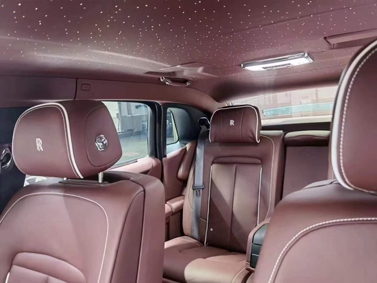 劳斯莱斯古思特纯手工打造的内饰,处处都体现着精致感,由2000名工人,经过60双手,花费至少20天打造。三辐方向盘尺寸适中,握起来很舒服。控台配有一块石英表,看起来很复古,与劳斯莱斯车型的高贵相互映衬。中控台配备了10.25英寸显示屏,集成了导航、多媒体、蓝牙电话、行驶信息等。