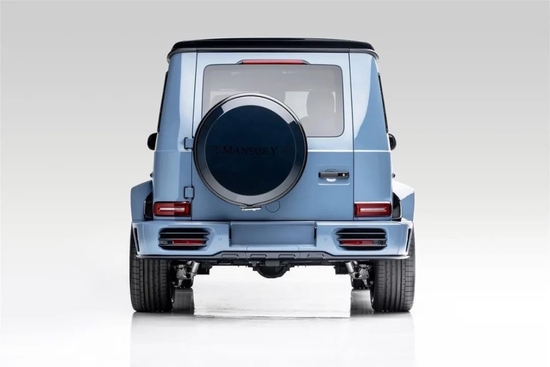 MANSORY AMG G63尾部:车顶后扰流、备胎罩、后保险杠、后置扩散器等部位均采用碳纤维打造;MANSORY重新设计的双边四出运动型排气尾喉完美凸显了AMG G63的卓越性能,令人不禁想要一脚油门纵情飞奔。