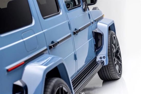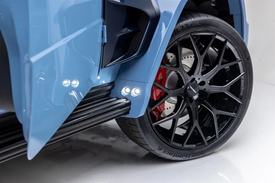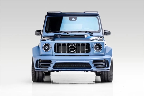 MANSORY为“中国蓝”AMG G63专属搭配了23寸N80轻合金多幅轮毂,并很有“心机”地将车身抬高了50mm以提升整体视觉效果;加之与原车融为一体的不可视碳纤维宽体轮眉及深红色刹车卡钳点缀,一股豪情万丈的越野竞速氛围显露于无形!