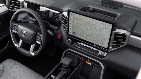 以往丰田皮卡车系列内饰设计确实没什么看点,就像丰田普拉多 (配置|询价)一样,主要以实用为主。但是现在时代变了,年轻消费群体越来越追求科技配置,丰田设计师团队也不得不做出一些改变,这次全新丰田坦途皮卡车内饰科技氛围已经相当强烈了,不仅有全液晶仪表盘加持,而且提供了超大面积悬浮导航屏幕,视觉效果甚至能够媲美特斯拉,TRD高性能版本更是提供了丰富的内饰装饰,比如红色真皮面料座椅,搭配有专属刺绣装饰。