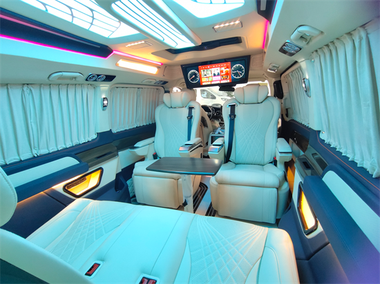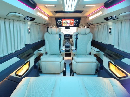 商务车也叫多用途旅行车,它最大的优势就是内部空间宽敞、舒适度好、实用性高。家用的话,家里人口多一个车出行更方便;商务接待的话,空间宽敞、舒适性好、实力展现,更有面子。且升级改装之后航空座椅不仅可以电动调节座椅的角度,航空座椅还带有通风、加热、按摩等多种舒适功能,同时这款实车改装案例的二排航空座椅还带有旋转功能,旋转之后,二排座椅和三排座椅可实现对坐的状态。