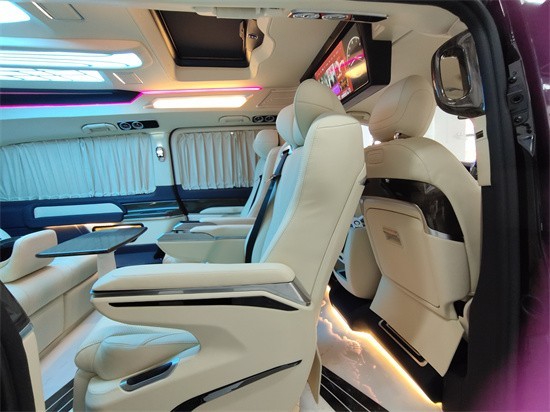 从2022款奔驰V260L改装高顶实车案例来看,座位布局方面仍然延续7座和4座两种布局方式,今天给大家分享的是7座实车布局方案。