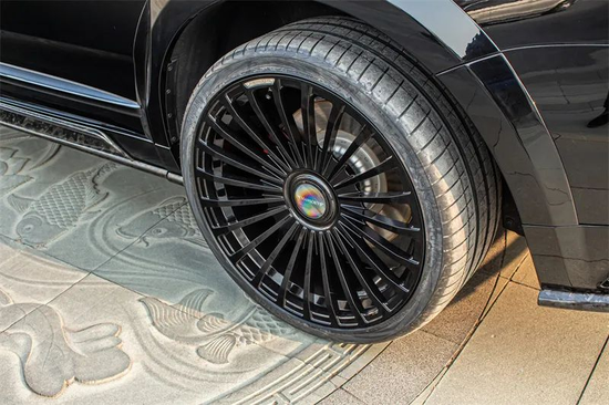 MANSORY迈莎锐为BB版库里南专属配备的轮毂自然也是“排面十足”:前/后10JX24吋FS.23钻石银(可另选钻石黑)全锻轮毂带MANSORY官方飞翼悬浮盖,源自全球“碳纤之王”的尊荣血统和品牌公信力使人不明觉厉;如果客户不喜欢该款轮毂,没有关系——MANSORY迈莎锐还提供了Y.8、V.6、N.80、CS.5、CS.11等多款锻造轮毂任其选择。