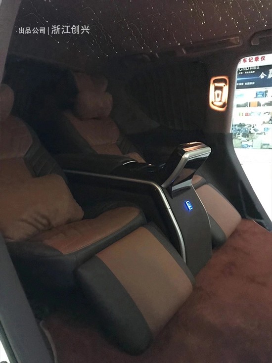 我平时市区用车的,或者跑跑长途和家人朋友等出去旅行,基本不去越野使用,所以可以改的比较典雅一些也没有关系,不必坚持太过硬派的改装风格,车顶的话除了包覆翻毛皮外我还做了满天星,增加了氛围感,看着有点儿气氛,航空座椅方面要重点说说,不然没什么可以介绍的了哈哈哈,升级航空座椅的好处是座椅靠背可以调节打倒,因为途乐原车的中排座椅除了腿部空间我觉得有点小外靠背比较直,坐久了腰累,升级航空座椅后有时候长途里我还可以把座椅打平睡睡觉,另外腿托也可以往上调节,是可以动的,大多数时候如果不是我开车的话我在后排都是半躺的一个状态乘坐,另外座椅有通风、加热和按摩功能,中间的手扶箱有个液晶屏是控制座椅功能的,另外手扶箱还有手机无线充电的功能和两个杯托,还有一个储物柜在里边。