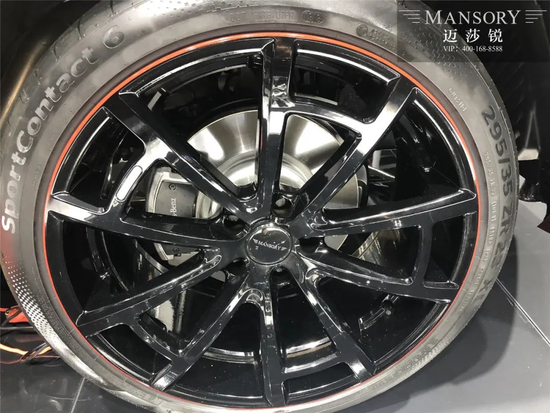 23寸超轻合金轮毂搭配395/30ZR24(104Y)性能车胎让MANSORY迈莎锐G63 red carbon彰显出令人雀跃的运动“天赋”。