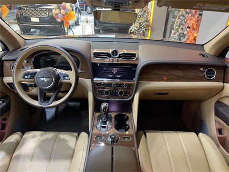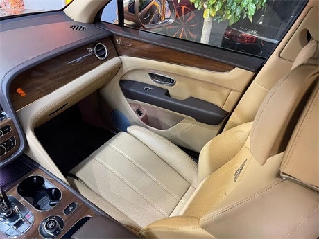 21款宾利添越混动 [沙漠铜/驼绒黄-熏橡木棕B]特别定制外漆- 纯色漆/金属外漆宾利徽章座椅刺绣 前座舒适座椅配置 镀铬前保险杠格栅 3辐式双色加热真皮镶边方向盘 21英寸五双幅铝合金黑色机械切割轮毂。