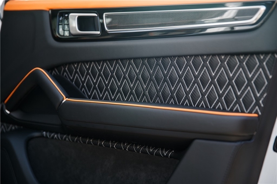 对车的审美,就如同对生活的审美,MANSORY鼎臻奢华的传统内饰工艺让人们见识到了“欧洲豪车定制大师”对艺术的极致追求:此款MANSORY迈莎锐卡宴指尖触及皮料皆出自安第斯山脉的Mastrotto头层小牛皮,12.8万针密针细缕的数控编织工艺使人不明觉厉;椅面、扶手箱、门板等处缝制了橙色菱形网格纹路,带来华丽跳跃视觉的同时也让人恍若置身激情泗溢的赛车空间——而这无疑是“城市探险家”们追寻的“动之美”减压法则。