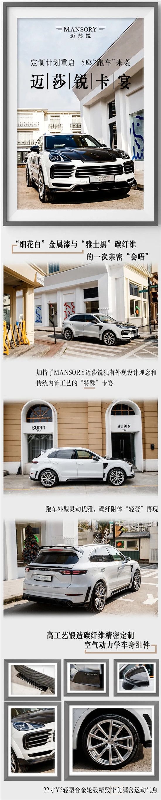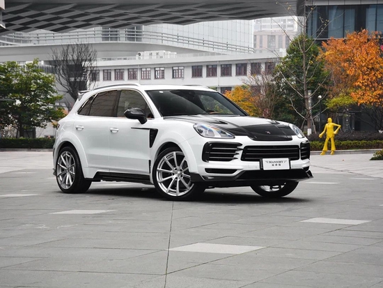 真正经得起推敲的品牌,必定不会拘泥于循规蹈矩。作为闪耀日内瓦车展的“流量巨星”,MANSORY并未针对这款细花白卡宴延续往日另类夸张的“魔改”风,而是在保留原厂雅尊气质的前提下,通过增加一个碳纤维宽体包围件来提升整体观感。此外,诸如:发动机盖带进气口、前唇、前/后保险杠、侧裙、扰流、后视镜罩、尾翼、后置扩散器等多个部位也都一一采用“轻胜铝、坚比钢、抗拉伸、耐高温”的黑线锻造碳纤维打磨而成的全套车身空气动力学组件做了全方位包覆升级。