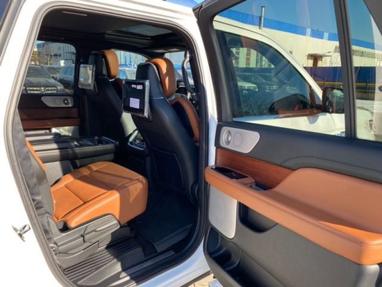 21款林肯领航员 (配置|询价)3.5T双窗全景天窗、中控12.3寸液晶显示器、电动方向盘、方向盘加热、Lincoln皮革包裹方向盘、仪表板和门上的高级木质装饰、电子控制三区空调、Weir®微型穿孔皮革座椅、前排加热通风按摩记忆座位、30项电动调节座椅、后排座椅具有10英寸屏幕媒体中心、二排加热座椅。2021款林肯领航员3.5T的内饰非常奢华,多功能方向盘,中控台的造型与宽大的车身相呼应,新车全部真皮包裹座椅,内饰采用桃木搭配设计,高贵典雅,加高加大的车身除了增加内部空间外,还给人营造一种尊贵典雅的感觉。最新林肯领航员新车采用了2+2+3的座椅布局,第二排采用了两个独立座椅,座椅内侧均配有扶手,舒适度超强。