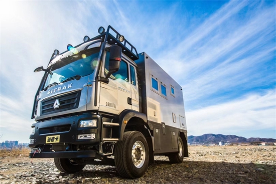 重汽汕德卡改装越野房车拥有越野宗师级的超级底盘,在其之上配备了一个多功能扩展组件,该组件用来在底盘上安装各种车身。正因为此,重汽汕德卡改装越野房车才能够成为百变金刚:可以变成旅行房车、货车、消防车、军用运输车等。当然了,所有重汽汕德卡改装越野房车的门式车桥都配备后差速锁,后轮驱动……接500mm的离地间隙,让它足以面对所有极限路况,其零部件及电气元件有防水保护、再配合防水式前大灯,轮毂、制动器密封等让这辆猛兽无所不能!
