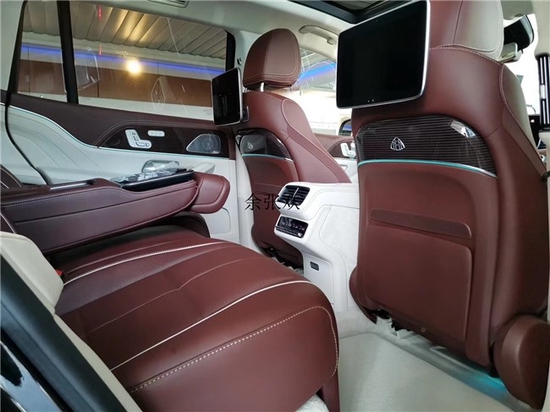 2021款奔驰GLS480内饰方面:内饰也极尽奢华,奔驰常见的全尺寸液晶屏联屏设计也用在了迈巴赫GLS480上,科技感十足。车内大面积采用顶尖真皮和木纹等材料,加入了自家香氛系统以及柏林之声环绕式音响。原本奔驰在豪华质感上就已经属于业内顶尖水准了,而迈巴赫作为奔驰的顶尖品牌,这方面还要更胜一筹,坐进去感觉就是坐进了头等舱。 21款迈巴赫GLS480其中第二排独立座椅相比普通版GLS更为靠后,同时还带有巨大的腿拖,而中央部分则是由控制台、储物空间和手机无线充电台等进行贯穿,并呈现出了类似于迈巴赫S级相同的头等舱设计。