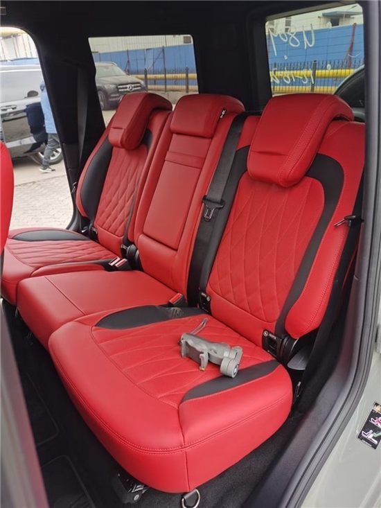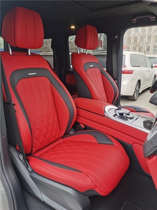 21款奔驰G63动态多仿形座椅的坐垫侧部和靠背包含整合式气腔,它们可根据行驶动态来不断充气或排气,从而为驾驶员和副驾驶的就坐姿势提供更好的支撑,并在过弯等情形中提供更好的侧部支撑。