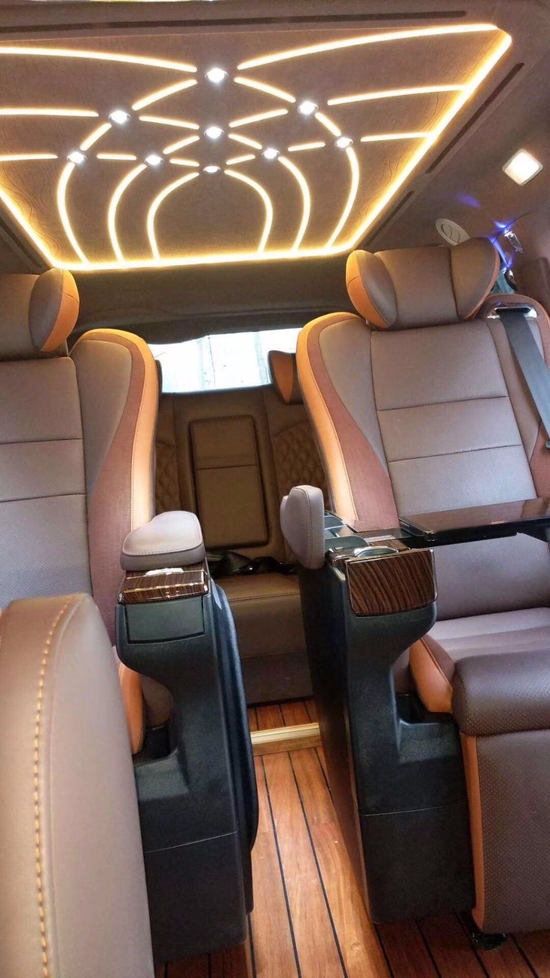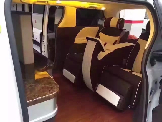 丰田塞纳改装中排航空座椅,后排沙发床,地板,扶手箱及顶灯算是简单实用的改装方案了,不过中排座椅却有很多档次可以选择,价格也都不一样,看个人喜好。
