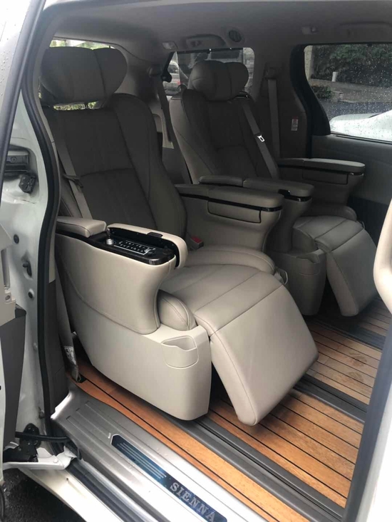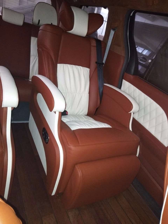 丰田塞纳改装座椅可以改装档次高点的埃尔法款式,除了没有扶手里的桌板和比埃尔法的座椅小一号以外,基本一样,同属丰田系列,此款座椅十分适合。
