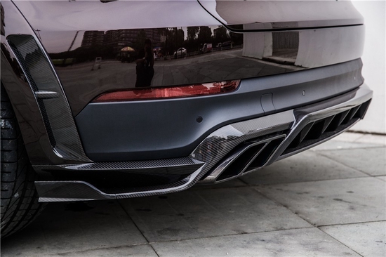 MANSORY动感外观设计语言——迈莎锐卡宴 (配置|询价)全身涂装热情奔放的桃红木金属漆,航空级碳纤维宽体车身,包含:发动机盖带进气口、前唇、侧裙、宽体轮眉带出气口、前后保险杠、后视镜罩等。。。。。。使车头包围与轴距都得到了视觉可见的拓宽与加长,霸气凌厉。
