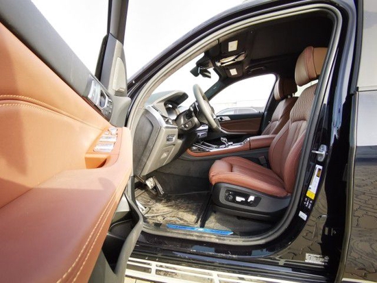 2021款宝马X7内饰部分,宝马X7采用最新家族式设计语言,使用大量真皮、木纹饰板进行包裹。配备12.3英寸带有注意力检测的全液晶仪表和12.3英寸悬浮式触控显示屏。空调出风口与温度显示屏、实体功能按键结合在同一区域,并使用银色装饰条进行点缀。下方盖板下方为带有加热、制冷功能的杯架,全新的水晶电子挡杆造型十分精致,进一步提升了车内的豪华氛围。