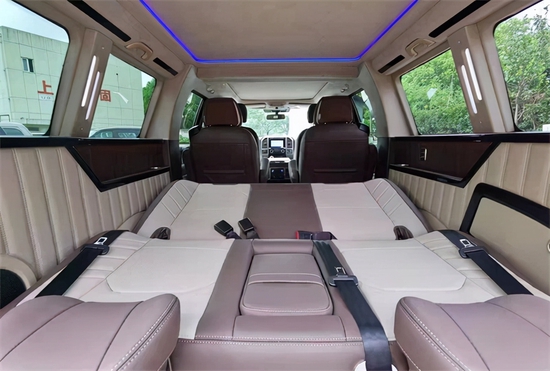 2022款国六 F-150福特勇猛者平顶内部铺陈进口柚木地板,二排设置了两张带独立腿托的CEO级航空电动按摩座椅,总体空间更宽广修更豪华,氛围更精奢,适用于商务接待或家族旅行而采用不隔断计的F-150福特勇猛者平顶车型乘客舱看起来就简约了许多。