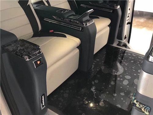 搭载4向电动调整Ottoman头等舱座椅,拥有三面向头枕、独立扶手、扶手置杯架、多功能折叠桌,以及椅背最180度仰角;前后共拥有450mm滑移长度与高度脚踏垫设计。首排与后排独立系统的影音播放器,让驾驶员与乘客都能拥有专属的影音主控权,在前座驾驶使用卫星导航的同时,后座乘客仍可享受视听娱乐。