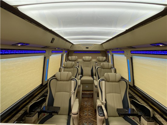 丰田考斯特改装商务车,在驾驶室与乘客席之间增加隔断,隔断可以是全封闭形式也可以是增加电动门的半封闭形式,丰田考斯特改装商务车隔断的设计能够为乘车人员提供一个更加舒适安静的环境,同样也可以在一定程度上使驾驶员免受杂音的骚扰,保证行车的安全。在隔断的设计上,丰田考斯特改装商务车还可以增加一些装饰,电子时钟或者是显示屏的设计既能够增加美观,又能节省车内的空间。
