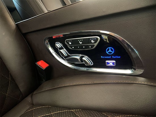 座椅的开关控制面板是奔驰专用开关面板,可控制电动腿托、前后移动、靠背调节和通风、加热、按摩等功能,两个面板各带一个USB充电插孔提供手机充电。