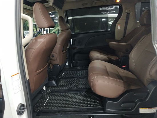 21款丰田塞纳内部空间非常大,充分发挥了MPV的优势。 ,第二排座椅的腿部支撑,放倒第三排座椅,加上腿部支撑,完全变成了两张摇篮床,让长途旅行多了一份舒适。宽敞舒适后座空间,配上该车安全稳定的行驶系统,保证途中也能舒适地谈上生意。