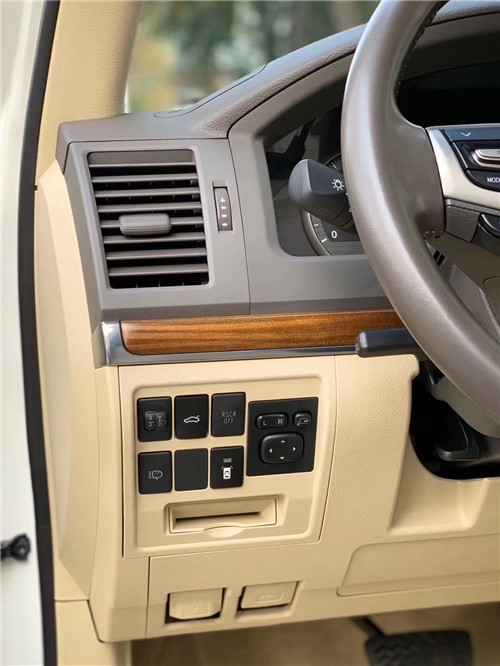 20款丰田酷路泽4600整个操控区域色调为深色系,仪表盘,方向盘和排挡等位置均配以桃木装饰,尽显豪华质感。新款丰田酷路泽4600不但有DND导航,这款车的倒车影像还可以显示在内后视镜上,中央扶手箱还装备了冷藏箱,这些都与中规版的车型是有所不同的。
