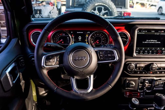 牧马人内饰方面在中控台搭配可爱的复古小按钮,使得驾驶舱变得很有风格,而且操作也非常的方面,做工用料方面也是非常实在,不过整体风格与当下流行的科技显得有点格格不入,毕竟现在的科技时代,许多车辆都装备了高科技产品,不过牧马人却选择复古来打破常规,显得特立独行。