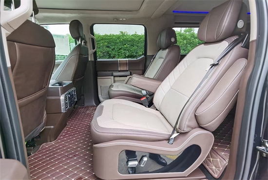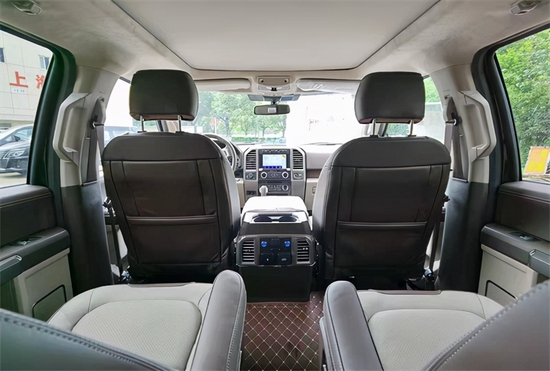 福特F150勇猛者以美国进口的福特F150为原型车,历经精工打造,经过后尾箱与车体的衔接,构成与车身稳定的一体式车厢,同时在原有五座的基础上,加装第三排真皮座椅,圆满融汇成为福特F150勇猛者。福特F150勇猛者在保管其原型车强悍性能的同时合理应用尾箱空间,将其打构成为一个大型豪华温馨的7座型SUV。