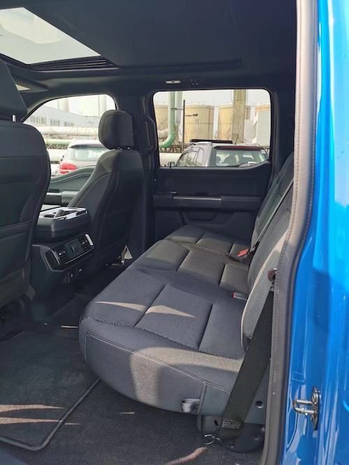 2021款福特勇猛者第三排座椅腿部空间确实给力,就是头部空间比较局促,毕竟在货斗上安了一排座椅,座椅位置就偏高,所以离车顶也是正常现象,不过这种设计有一个好处就是视野很棒,可以坐在第三排看到前挡风的视野,有种剧院式的效果。P.S。第三排座椅比第二排软,坐着更舒服。网络段子常说“跑不如走,走不如站,站着不如坐着,坐着不如躺着,躺着不如睡着”,这么看来,2021款福特勇猛者这后排表现似乎更厉害。