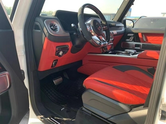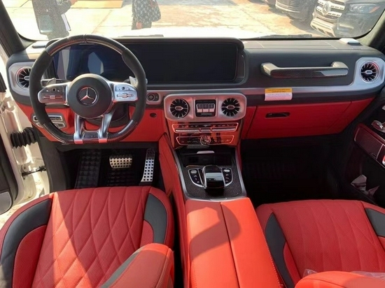 运动感搭配车型专属细节:内饰设计AMG G63被赋予了更具当代风格的内饰,与鲜明外观特点交相辉映。侧面通风口和仪表板上的高音音箱分别呼应了圆形大灯和转向指示灯的形状。AMG G63的标志性特征还包括副驾驶前方的扶手和3个差速锁的镀铬开关
