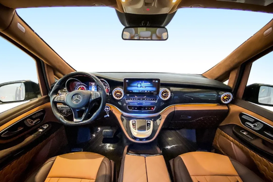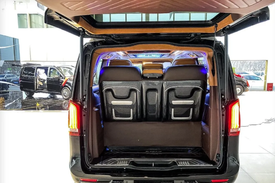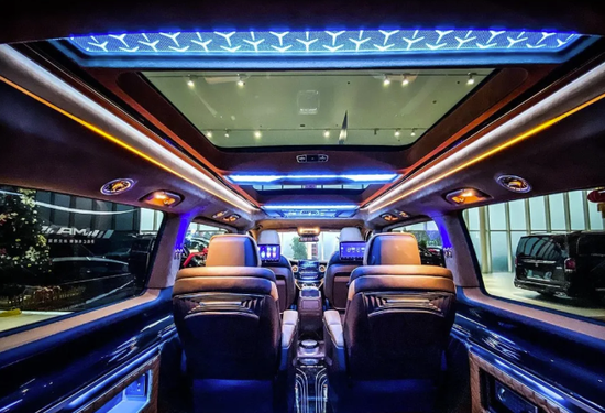 9速奔驰V260L梵·兹慕首创奔驰商务小高顶设计,顶棚同样采用碳纤维材质,高度1.98米,2米地库毫无压力,外观采用全黑的颜色,少了一份清新,多了一份厚重之感。车身线条流畅,饱满的前脸,小高顶的车身开出优雅的姿态。在车内配色上,采用的是偏美式的豪华装修风格,加上高强度顶级碳纤维材质内饰包裹,营造出超大时尚舒适空间。(底价详询中马房车汇官方客服热线 预约后可视屏看车)