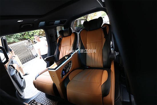为什么说不宜长久乘坐呢?因为靠背太直了也比较硬,坐久会有点费腰,唯一可以改变它的方法是把后排换成航空座椅,原车五座变四座或者七座变四座,反正都是变四座,之后可以给予后排多功能调节和一些实用的电子功能,比方说通风、加热、按摩、手机无线充电等等。