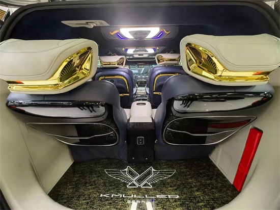关于别克GL8改装,其实陆上公务舱和陆尊版均可,就底盘配置而言,陆尊版的驾驶舒适度以及操控性优越于陆上公务舱。所以,克慕勒为了体现他的与众不同,也用的是陆尊es版所进行改装升级。整车为2.0t的动力,目前的国六商务车中,也基本都为这种动力。但是别克的马力在众多的商务车型中是排在前面的,再加上他车型并不是很大,所以它的操控性非常的好。