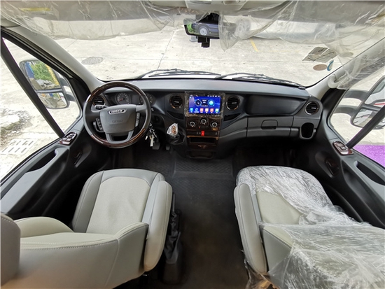 首先本车采用了三明治外箱体,2MM航空铝板,基于依维柯欧胜底盘打造而成,国六排放。外观造型宽大、稳重、时尚。红+黑色的拉花提升了整体的时尚感与观赏性,同时配备依维柯标志性的大灯组搭配流线型装饰条,显得活力十足。